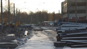 А про то, что работы начаты в июле 2012 — вранье. За полтора года до этого там разрыли участок от Пискаревского, оставив реверсивное трамвайное движение. Полтора года там ничего не делалось вообще.