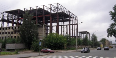 Высокий металлический каркас на углу Чугунной улицы и Полюстровского проспекта стоял около 20 лет. Его строили как цех ЛОМО, но предположительно в начале 1990-х бросили из-за тяжелой финансовой ситуации. Осенью 2013 года его снесли. Причем не полностью: сохранился фрагмент, выходящий на Чугунную улицу.