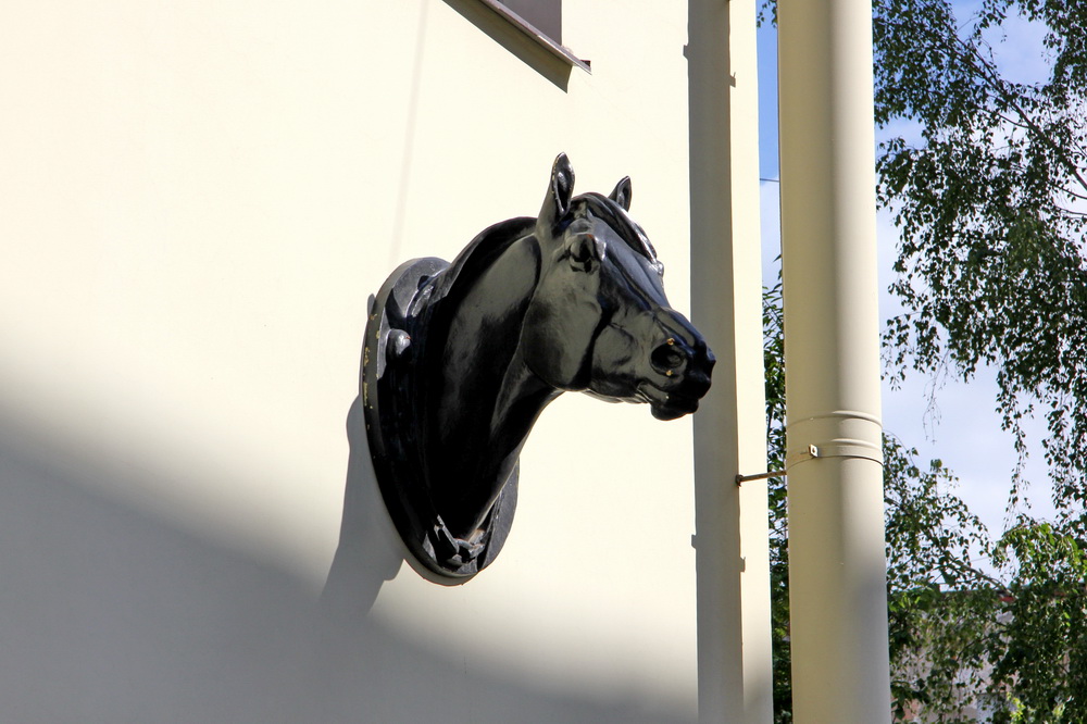 Здание ветеринарной станции Центрального района на Коломенской улице, 45, откроют в июле. А на днях на его фасады вернули бронзовые головы лошадей.