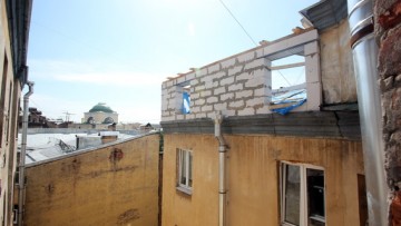 Как сообщили специалисты комитета, сейчас на части крыши, примыкающей к квартире № 22 на Колокольной, 11, разобрано металлическое кровельное покрытие, на карнизной части дворового фасада выстроены стены из блоков.