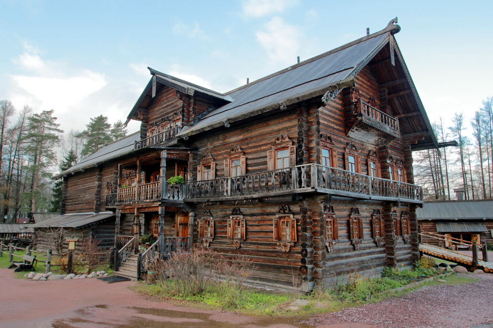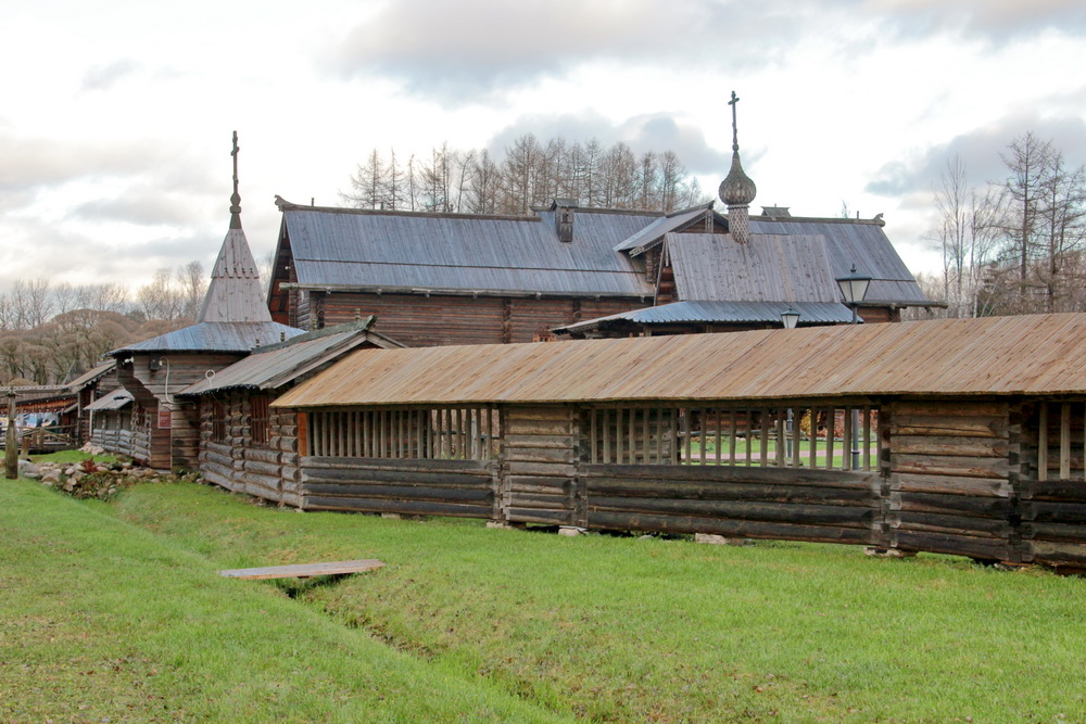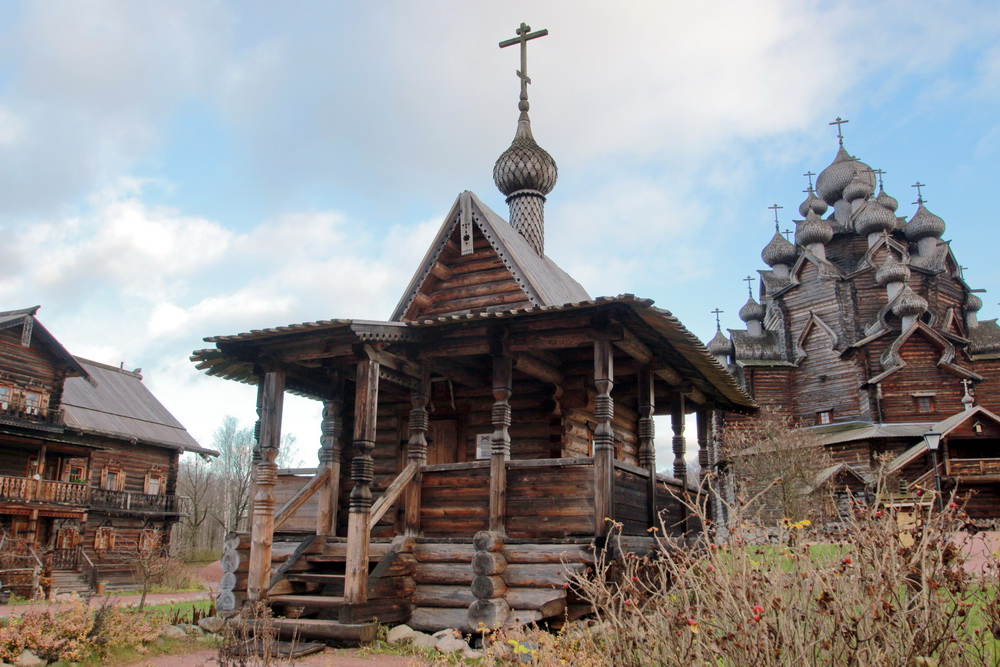 Как рассказал автор идеи этнопарка Михаил Мильчик, на тот момент замгендиректора ОАО «Спецпроектреставрация», за строительство взялся благотворительный фонд «Покровский». Концепцией предполагалось охватить часть бывших Петербургской и Олонецкой губерний. Так, деревянная ограда, которой обнесена территория, — это копия ограды Александро-Ошевенского погоста.