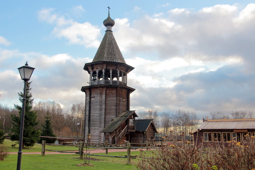 В качестве приходского дома построена копия заонежского дома Костина Великогубской волости. Также в состав комплекса входит копия колокольни Нижнеуфтюжского погоста.