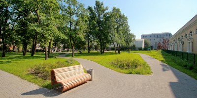 Весной «Канонер» анонсировал, что центр при комитете по благоустройству решил провести «переустройство» зеленой зоны. Проект разработало ООО «Портал плюс». Геометрию дорожек сохранили, но замостили плиткой. На месте газона позади мини-футбольного поля организовали спортивную и детскую площадки.