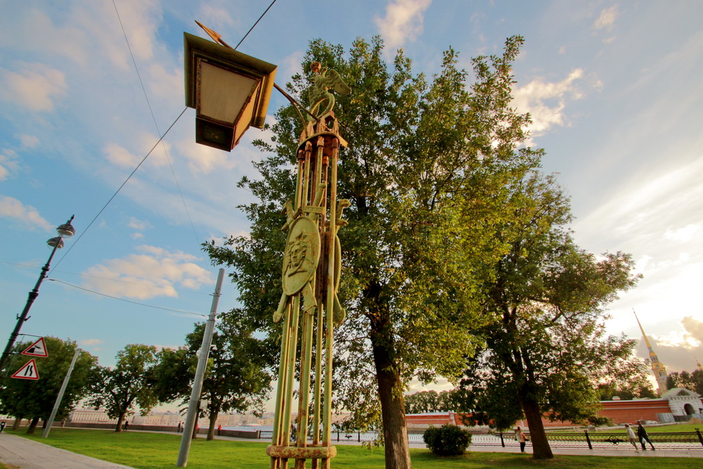На Троицкой площади Петроградской стороны вдоль Каменноостровского проспекта стоят неработающие фонари. Исторически они находились чуть в другом месте — служили оформлением спусков Суворовского наплавного моста через Неву, располагавшегося на месте современного Троицкого моста.