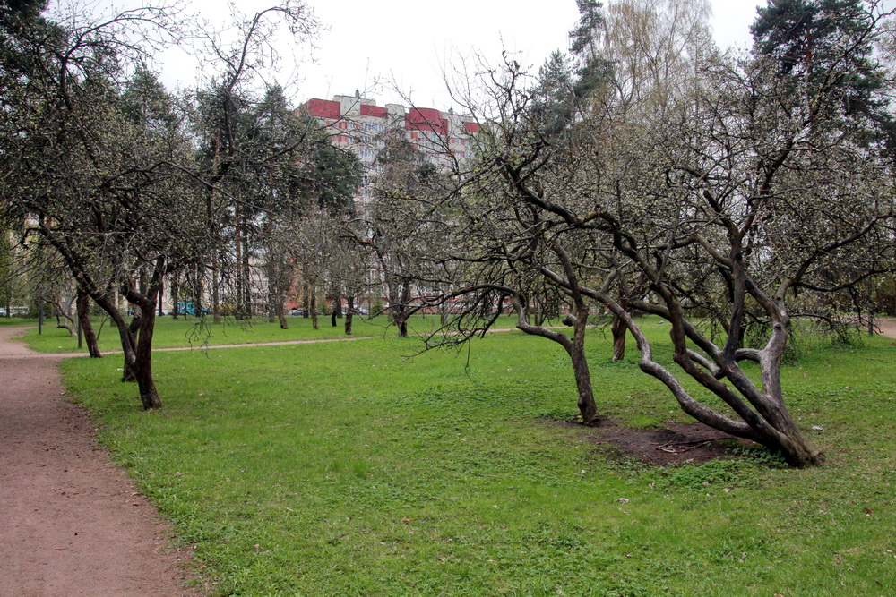 Аллеи в парке «Сосновка», параллельные Светлановскому проспекту, и яблони на них остаются напоминанием о некогда существовавшей там дачной застройке.