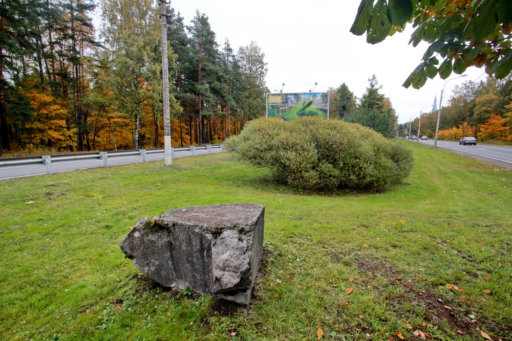 В Шушарах в траве между рельсами можно увидеть нижнюю часть знака. Та же картина на Приморском шоссе в Лахте между двумя проезжими частями и в Сергиеве в конце Российского бульвара.
