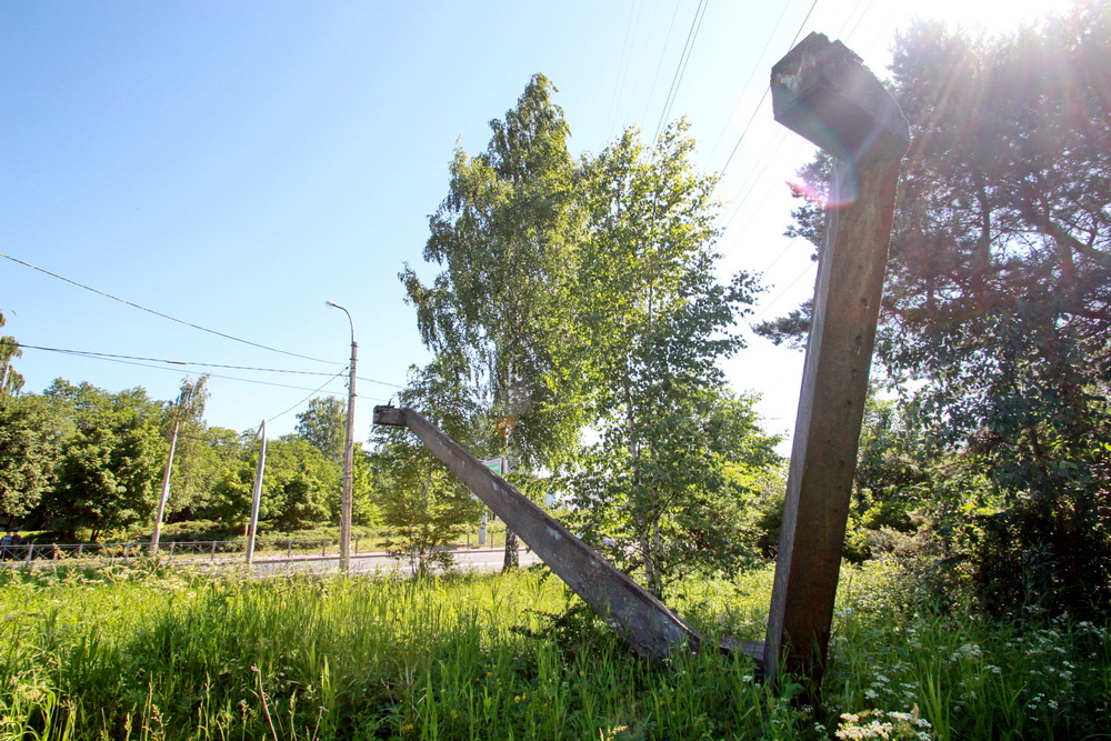 Когда-то в разных концах города стояли однотипные знаки со словом «Ленинград», помещенным на бетонную рогатку. К настоящему моменту они почти исчезли, но что-то еще можно увидеть.