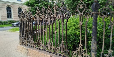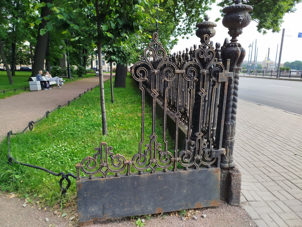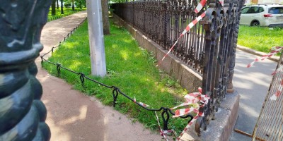 Комитет по благоустройству попросил коллег из КГИОПа отремонтировать ограду Румянцевского сада. Она имеет множественные повреждения, в том числе крупные утраты, и в таком виде пребывают многие годы.