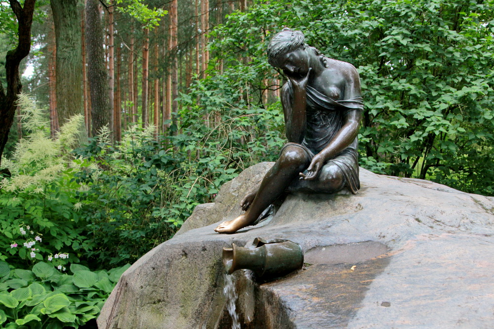 Скульптура фонтана «Молочница» (или «Девушка с кувшином») авторства Павла Соколова была установлена в 1810 году. В 1990-м ее заменили копией, а оригинал перенесли в фонды музея-заповедника «Царское Село». В первой половине 2000-х исчез один из элементов новодельной скульптуры — черепок разбитого кувшина, что лежал в руке бронзовой девушки. До сих пор его не вернули.