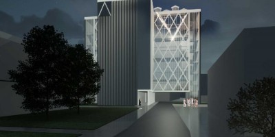 В отделке фасадов планируется применить «архитектурный бетон», причем на торцевых фасадах он будет «с треугольными ячейками, создающими дополнительную светотень».