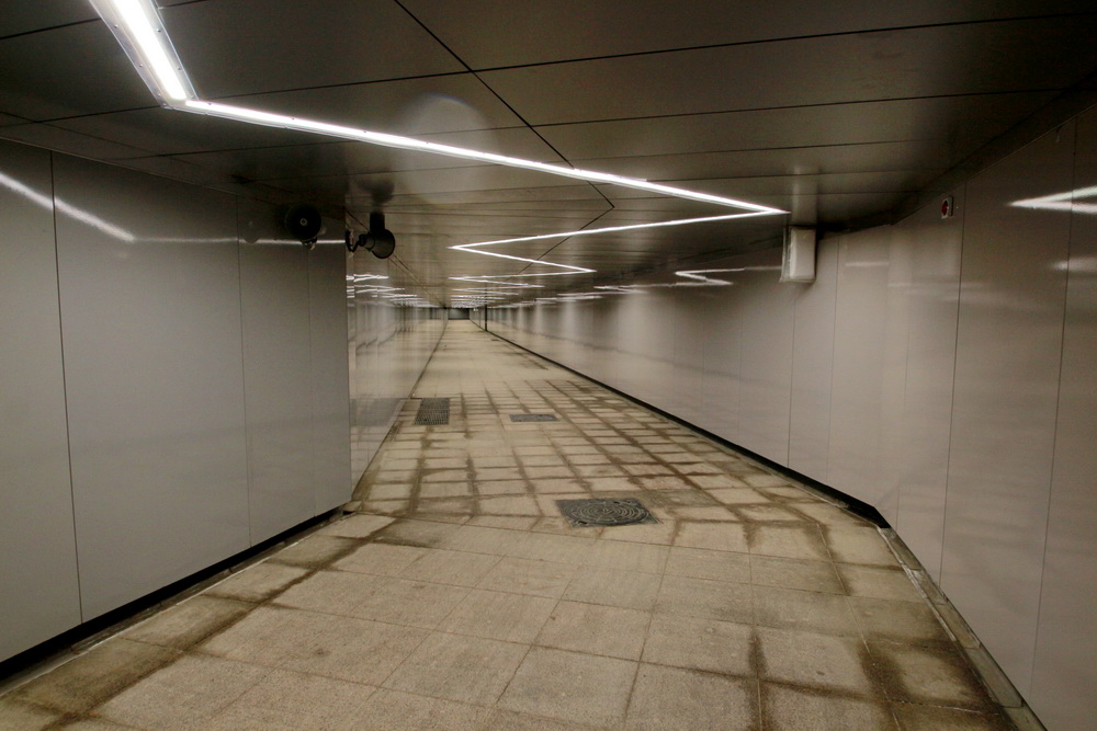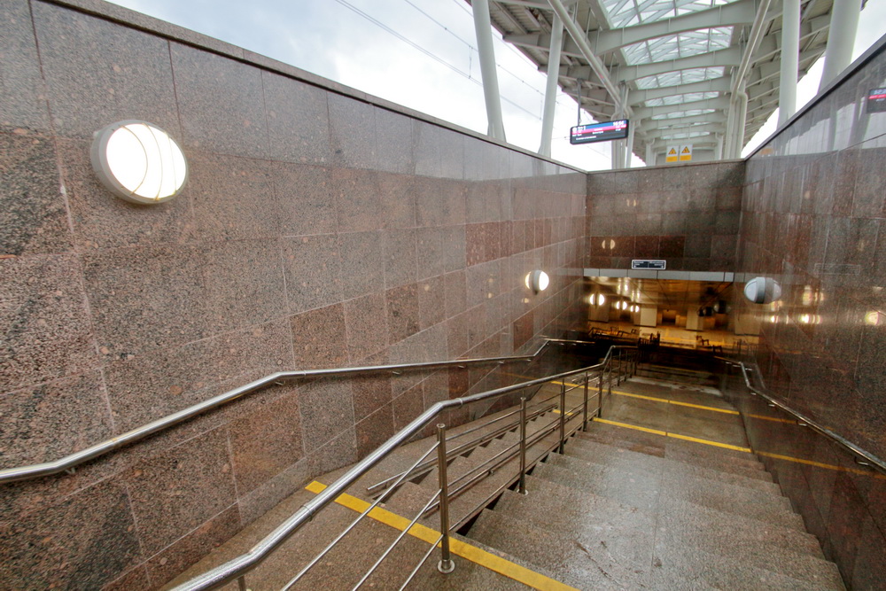 По центру платформы организован спуск в подземный переход. Его строила дирекция при комитете по развитию транспортной инфраструктуры. Тоннель прошел не только под железной дорогой, но и под двумя магистралями — Приморским шоссе и строящимся участком Шуваловского проспекта, а также под Высотной улицей. Проектом, выполненным АО «Институт „Гипростроймост-Санкт-Петербург“», предусмотрено пять спусков. Пока действуют три — два к Высотной и один к станции; еще два выйдут к Шуваловскому проспекту.