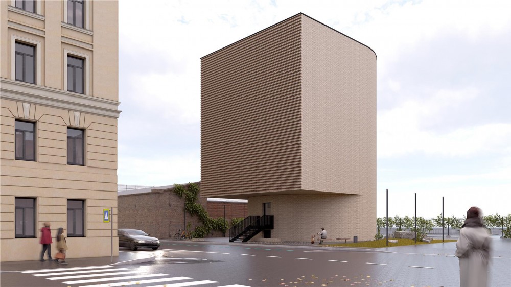 «Вышележащие этажи в южной части остаются полукруглыми в плане, а в северной части к полукругу присоединяется трапециевидный в плане объем, консольно нависающий над первым этажом. Для создания необходимых условий хранения оконные проемы проектом не предусмотрены», — пояснили в комитете. Внешне объект будет похож на корабельный вентиляционный раструб.