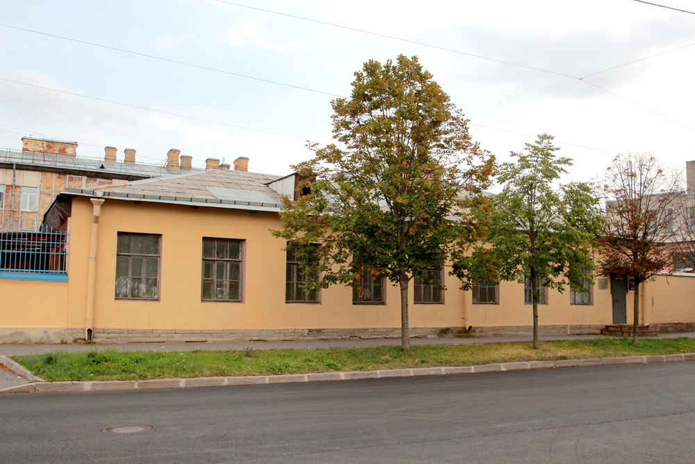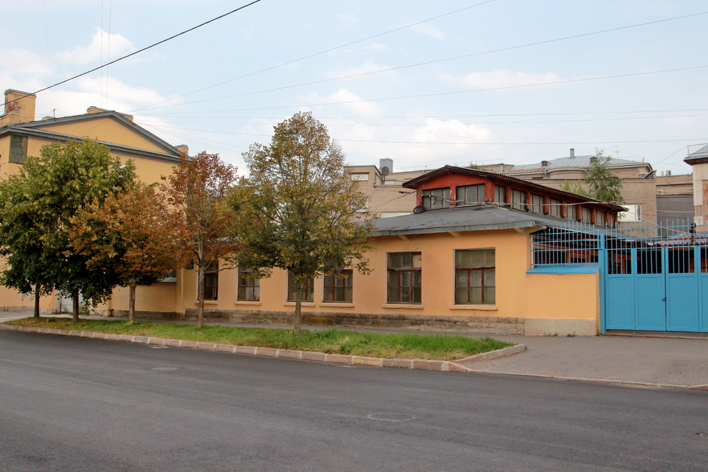 Одноэтажное здание сложной формы, выходящее в Подъездной переулок двумя фрагментами, — служебные постройки 1-й Учебной автомобильной роты. Оно было построено в 1911 году по проекту архитектора Ивана Балбашевского. По закону, снос дореволюционных зданий в этой части Петербурга запрещен.