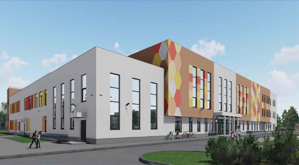 Проект Г-образного двух-трехэтажного здания по заказу ООО «Специализированный застройщик „Ранта резиденс“» разработало ООО «В-девелопмент». Здесь будет не только собственно детский сад на 90 мест, но и начальная школа на 100 мест.