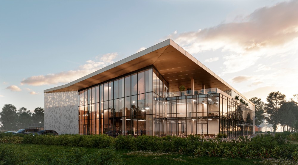 «В здании появятся крытые корты, тренировочные залы, зоны для разминки, зал общей физической подготовки, а также кофейня и другие административные и вспомогательные помещения. На третьем этаже расположена видовая терраса для отдыха посетителей. На территории предусмотрены открытые корты», — рассказали в КГА. В отделке фасадов планируется применить металлические панели и витражи.