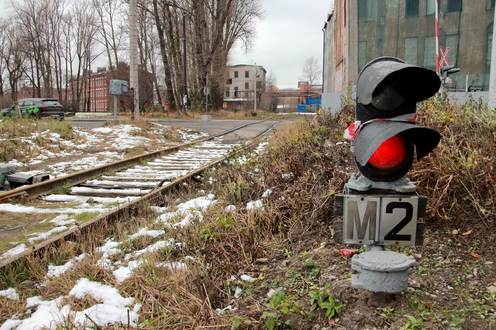Рельсы ведут от Балтийской линии к заводу «Красный треугольник». На трассе два переезда — с улицами Шкапина и Розенштейна. Периодически там ходит маневровый локомотив с цистернами и хопперами.