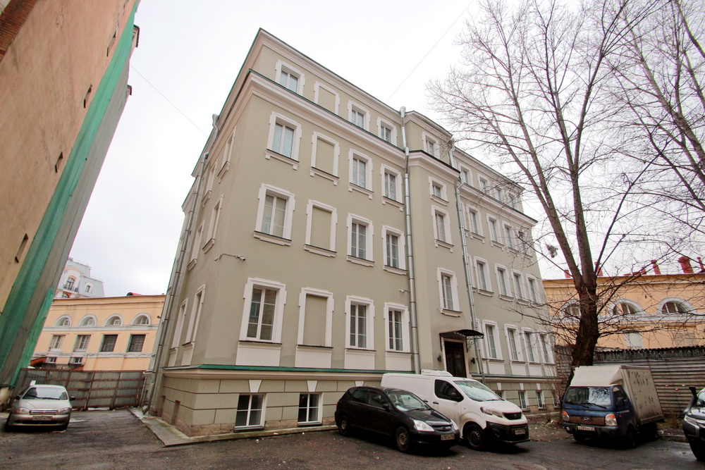 Трехэтажный на высоком подвале флигель был построен предположительно в XIX веке. Его признали аварийным в 2011 году и затем расселили. В 2016-м объект с торгов купила Ирина Злобина.