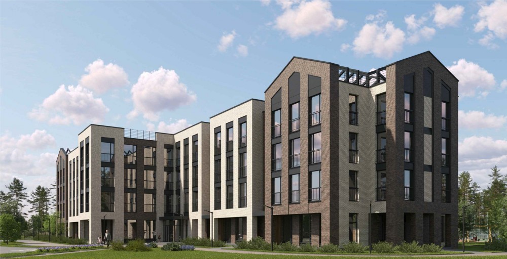 Проект жилого дома разработало ООО «Проектное бюро „Петроград“», сообщили в КГА, не уточнив застройщика. Четырехэтажка будет состоять из двух объемов, примыкающих друг к другу со сдвигом. Шесть ризалитов будут завершены фронтонами в виде схематически изображенных домиков. «Отделка здания — штукатурка под клинкерный кирпич», — добавили в комитете. Пруд, расположенный в границах участка, закопают.