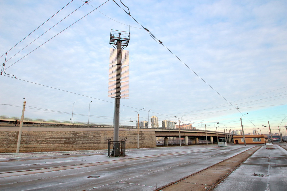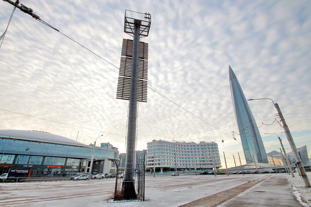 На трамвайном кольце «Лахтинский разлив» в конце улицы Савушкина одиноко стоит створный знак. Когда-то он служил навигации, но после застройки берега Лахтинской гавани (в 2025 году построили гостиницу на Приморском проспекте, 80, корпус 2) его с воды больше не видно.