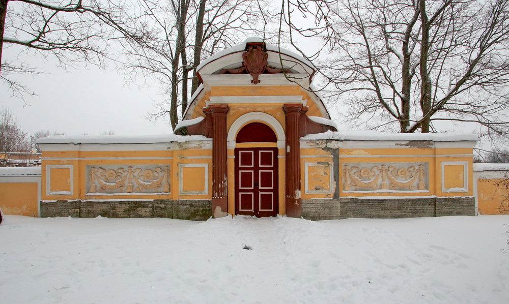 В Пушкине остался боковой фасад с воротами возле Садовой улицы. Он теперь похож на декоративный забор.
