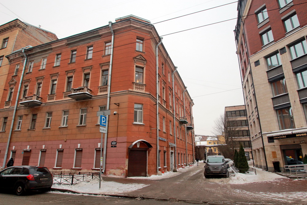 Дом на улице Александра Невского, 6, северным фасадом выходит в безымянный проезд, который в прошлом именовался Исидоровским переулком.