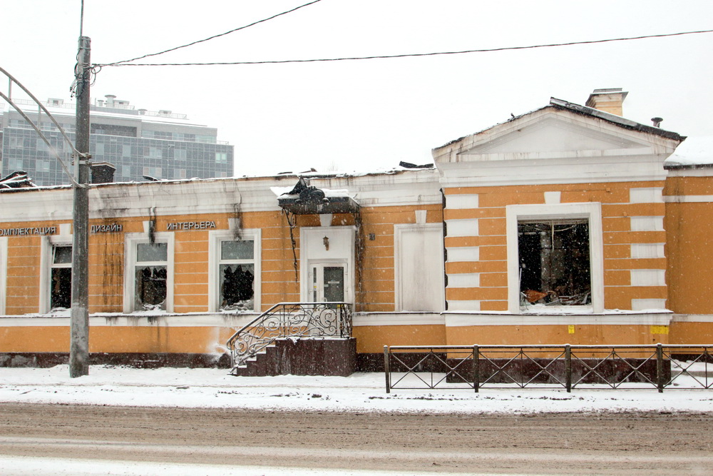 Дореволюционное здание использовалось как магазин отделочных материалов. Сегодня ночью в нем произошел пожар. «В одноэтажном здании размером 20×45 метров происходило горение на площади 300 кв. метров», — пояснили в МЧС. Судя по фото- и видеосвидетельствам, пожар был крупный: сгорела крыша, в окнах было видно пламя.