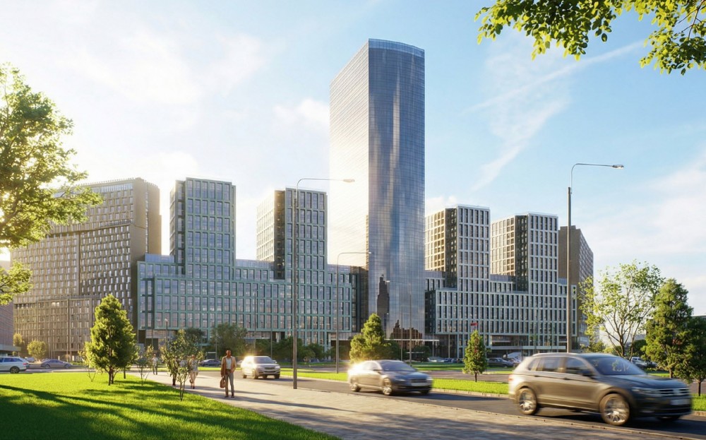 Теперь стало известно, что единственные советские элементы комплекса — офисные здания на площади Конституции, 1 и 3, — решено снести. Проект по заказу ООО «Пальмира», входящего в «Лидер групп», разработало ООО «Архитектурное бюро „Студия 44“» Никиты Явейна. Он предложил выполнить оба здания одинаковыми, в виде 22-этажных букв Н (соединяются с 4-го по 13-й этаж). Внутри анонсированы офисы. Вчера проект презентовали на градсовете.