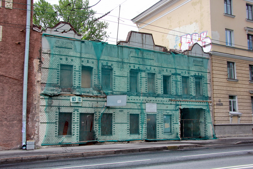Кто-то самовольно взялся за заброшенный дореволюционный дом на Волковском проспекте, 10. Недавно ему начали мастерить новую кровлю вместо утраченной, через которую росли деревья.