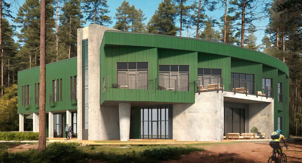 Как рассказали в КГА, проекты обоих зданий по заказу В. Тейге разработало ООО «Архитектурная мастерская „М119“». Первый этаж гостиницы будет бетонным с прозрачным покрытием, а для второго, на котором и расположатся номера, используют зеленую доску. «Угловые срезы террас и балконов формируют динамичный „зубчатый“ ритм», — описывает комитет.