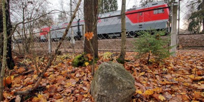 На Паровозной улице в Зеленогорске в лесополосе вдоль железной дороги можно встретить несколько камней. Они остаются от вокзала, который тут находился.